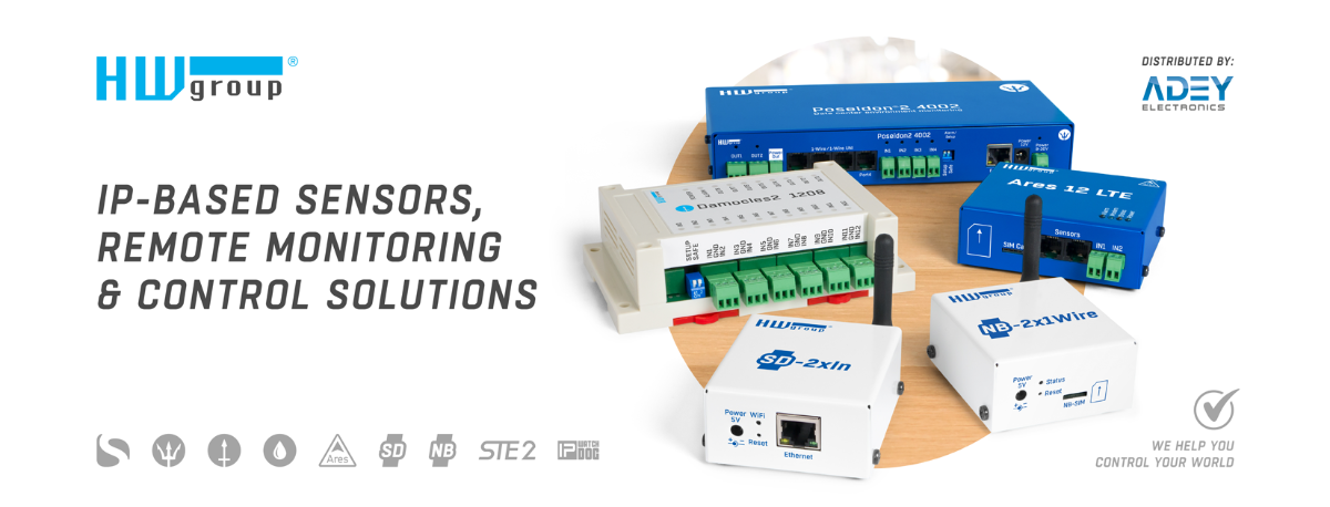 Adey Electronics are proud to announce that we are now a distributor of HW Group Remote Monitoring and Sensor solutions, to complement our existing range of industrial IoT and M2M connectivity solutions.