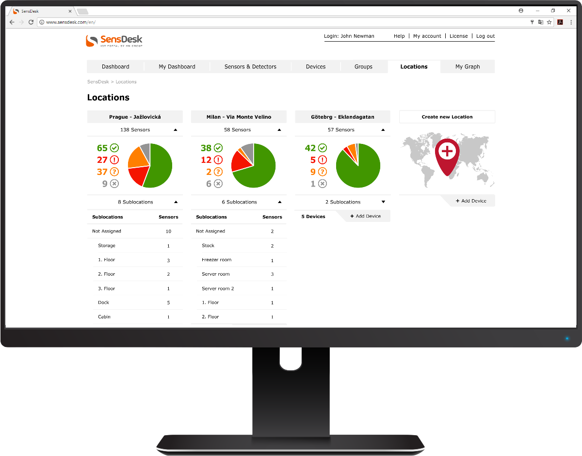 The HW Group devices give you an option to securely transmit your sensor data back to your own platform or to the provided SensDesk platform, where we present your data in a usable, visual format. Your FREE SensDesk dashboard then provides you with email alerts and important business information, allowing you to react to critical events, evaluate ongoing performance, protect your business and assets.