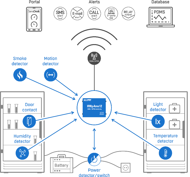 - Ares 12 can monitor motion and door contact (of refrigerator/freezer system)